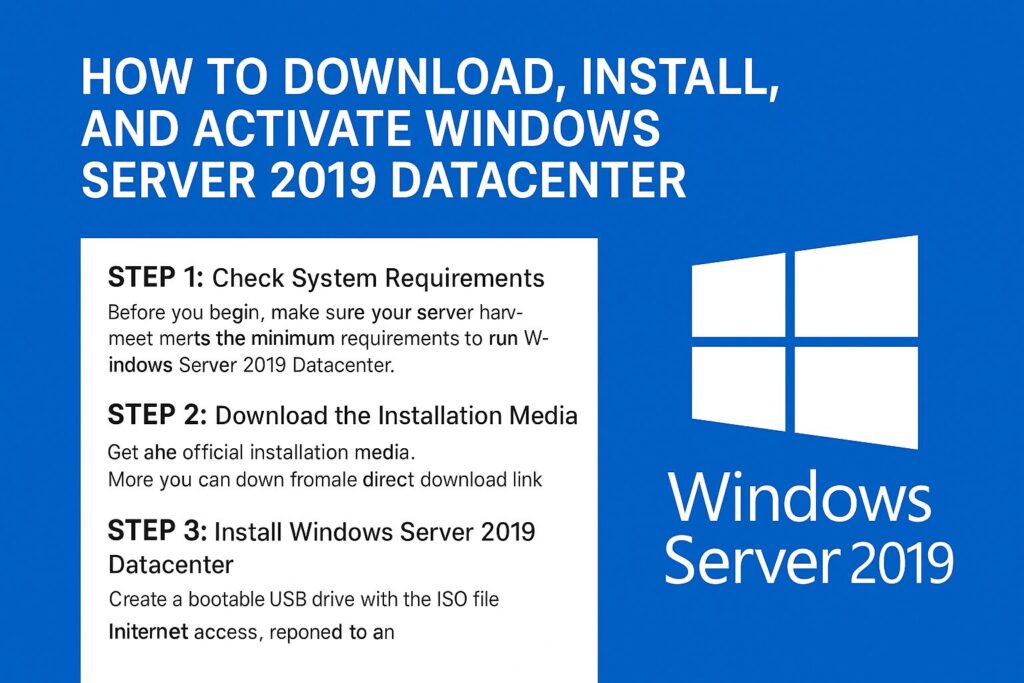 In this step-by-step guide, you’ll learn how to check system requirements, download the installation media, install the OS, and activate Windows Server 2019 Datacenter. We’ll also show you where to get a 100% genuine lifetime license at an affordable price.